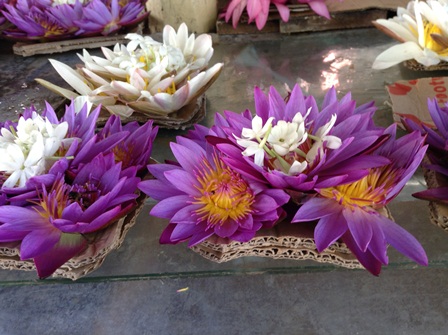 日本と違うところは、線香をあげずにその代り、供花に手を軽くつけ手を合わせ、又、手に花のかおりを移すがごとく、或いは不浄なる身体を清めるがごとく、供花に軽くふれ、手を合わせることを繰り返すのでした お花は、スリランカの国花である睡蓮と、その他ランなどがありました。 睡蓮は日本のように束にするのでなく、開花したものをダンボールの台に載せて、それをお供え台に置きます。 私達のドライバーも一心に祈りを捧げていました。