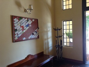 Hill Club Hotel の玄関の名刺受けのボードに、店主Anna も左上の写真のように店の名刺を2枚飾らせていただきました。